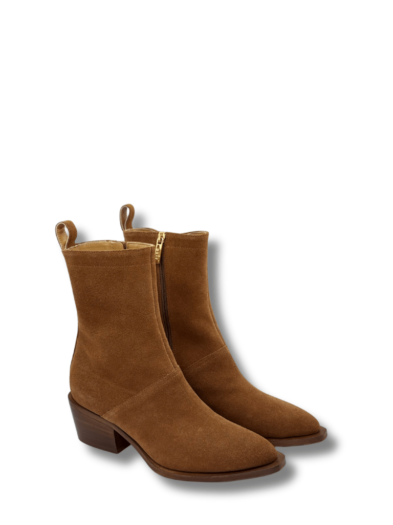 Apair Eia er en halvlang støvle, med lynlås på indersiden af hver støvle. Støvlen er lavet af ruskind og med træsåler. Bunden af sålen er gummi. En sofistikeret, men rå støvle.