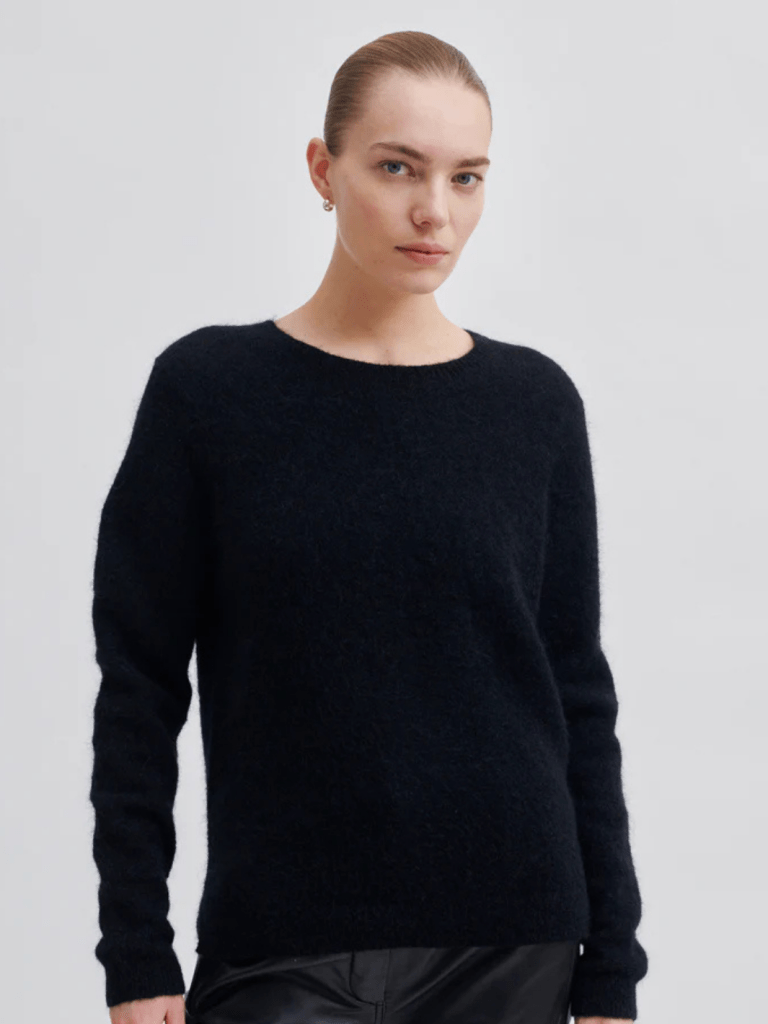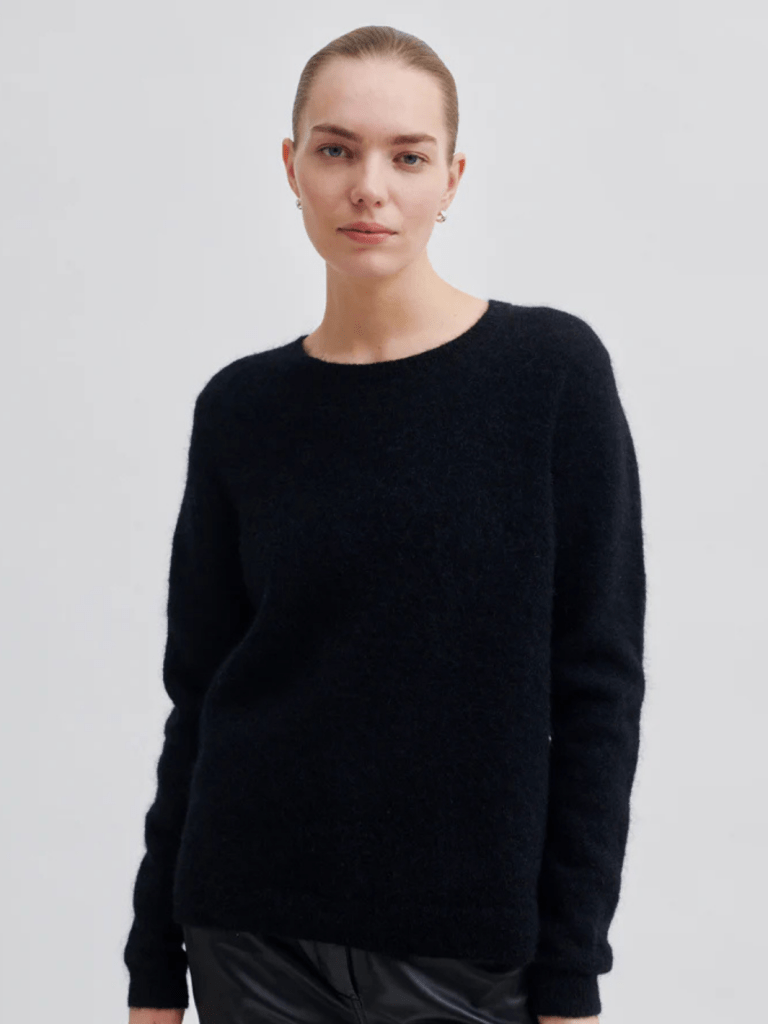 Sort Lun og luksuriøs Second Female Brook strik med rund hals.
