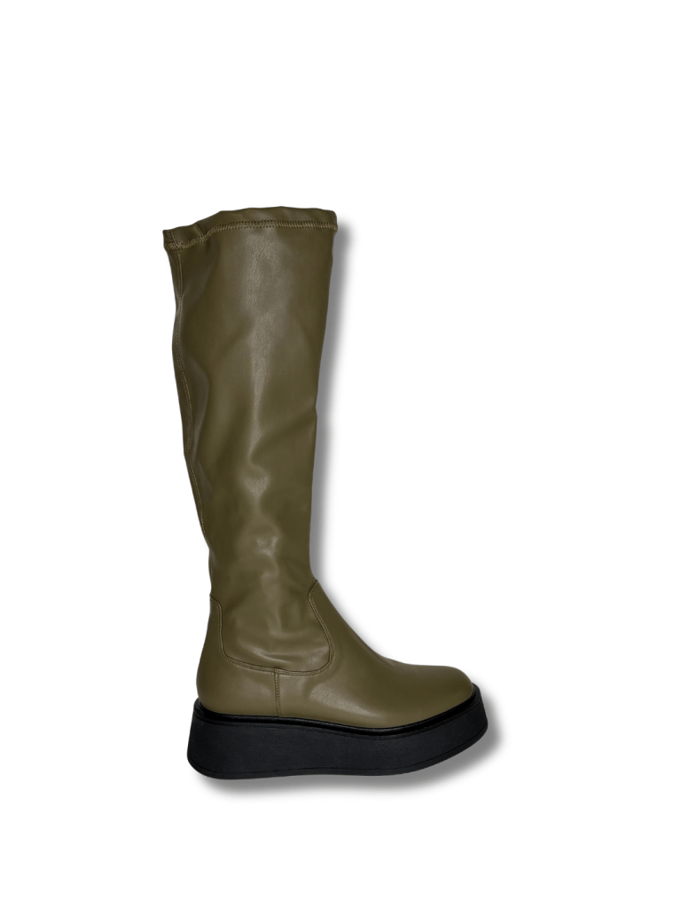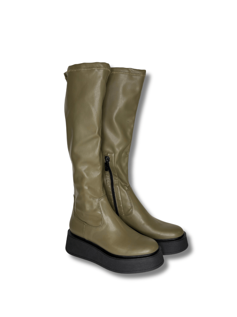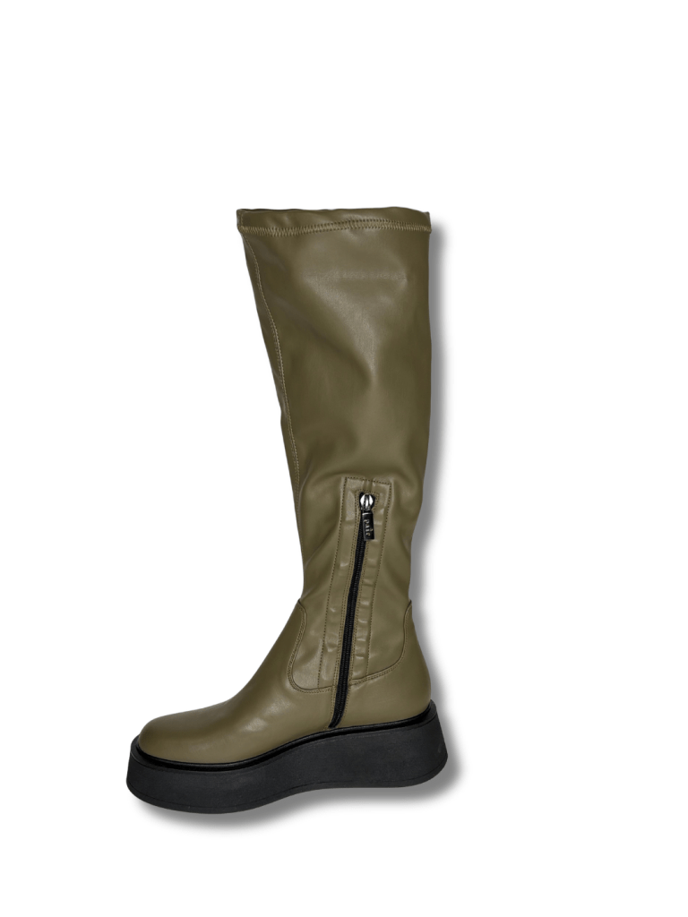 Apair Kansas støvle er en tætsiddende lang støvle, som giver en fantastisk silhuet. Støvlen har en lynlås på indersiden af hver støvle, er lavet af skind og med tykke gummi såler.