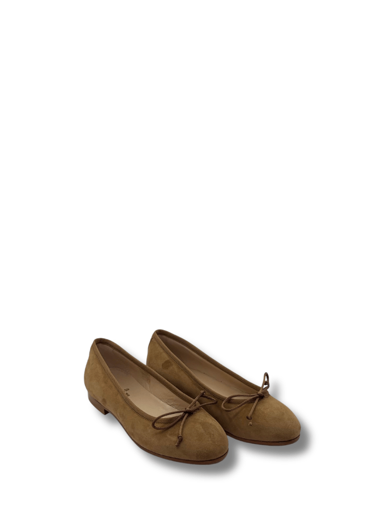 Skønne og super komfortable Apair ballerinaer i brunt ruskind, og med brune såler. Lille sløjfe på fronten. En rigtig fin sko til alsidigt brug.