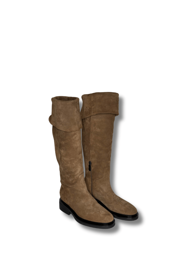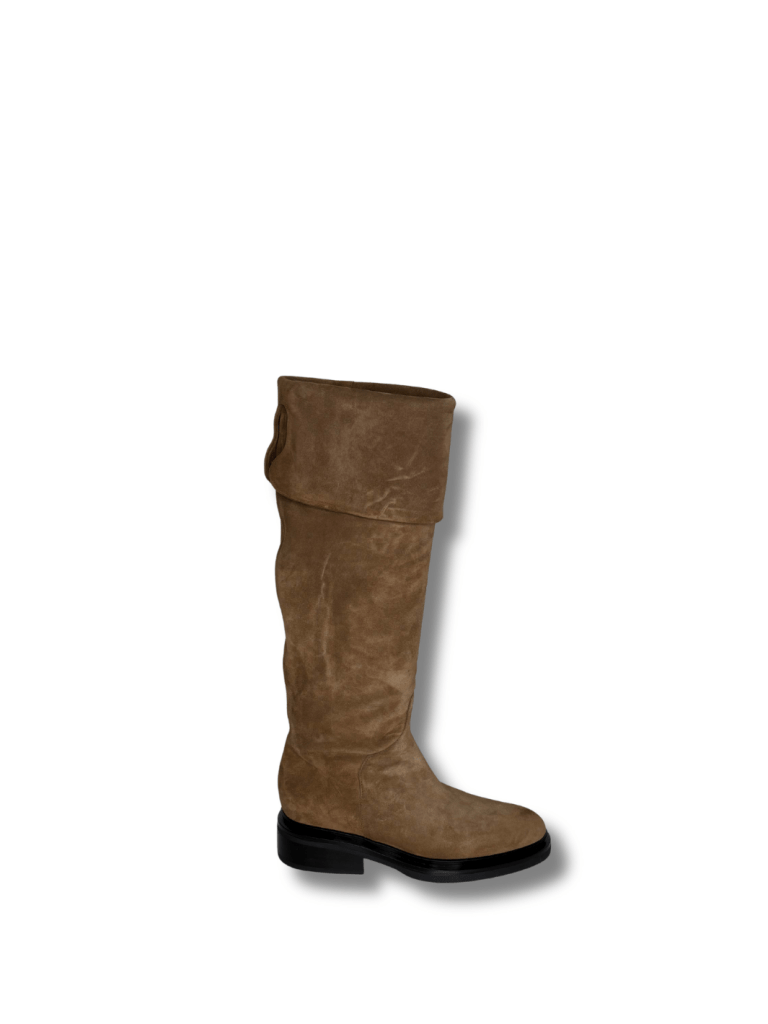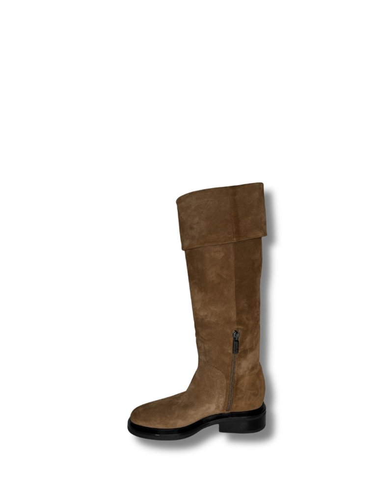 Apairs Florida støvle blender looks i et stilrent ridestøvle design. Med brunt ruskind og sorte såler. Lynlås på indersiden af støvlerne. Folder i toppen af støvlen.