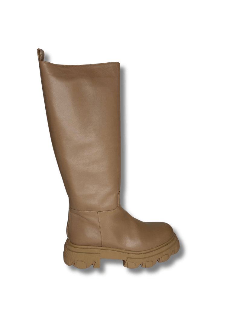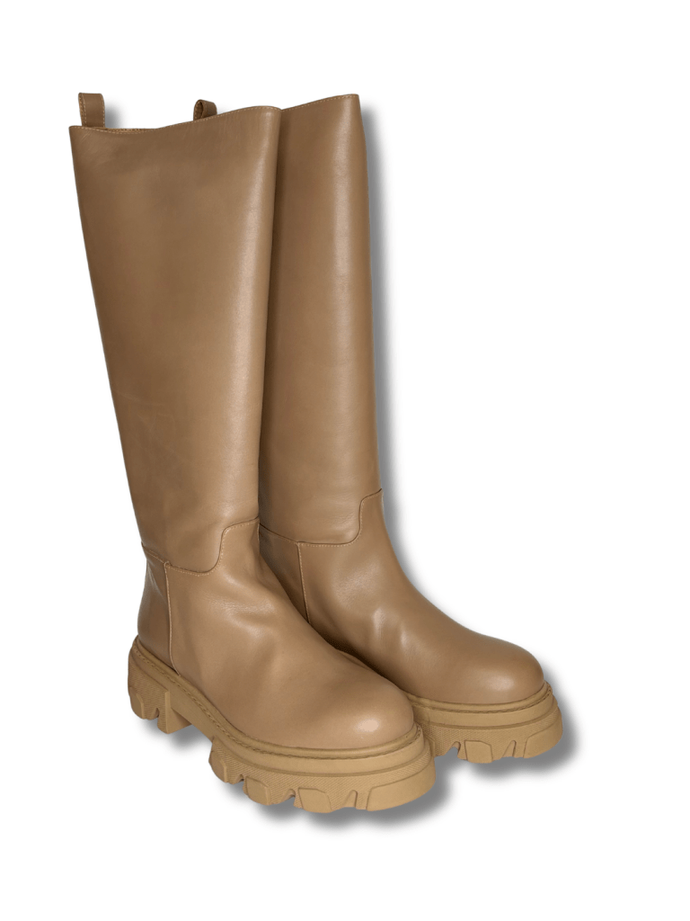 Lang chunky Apair støvle i lysebrunt skind. Støvlen har en solid sål. Super fed Apair støvle til alsidigt brug.