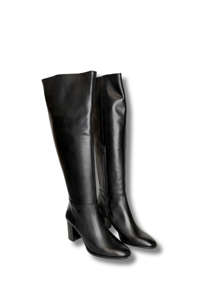 Sort lang Apair støvle med høje hæle. Fremstillet i det blødeste skind og med lynlås på indersiden. En smuk og stilet støvle til alsidigt brug.