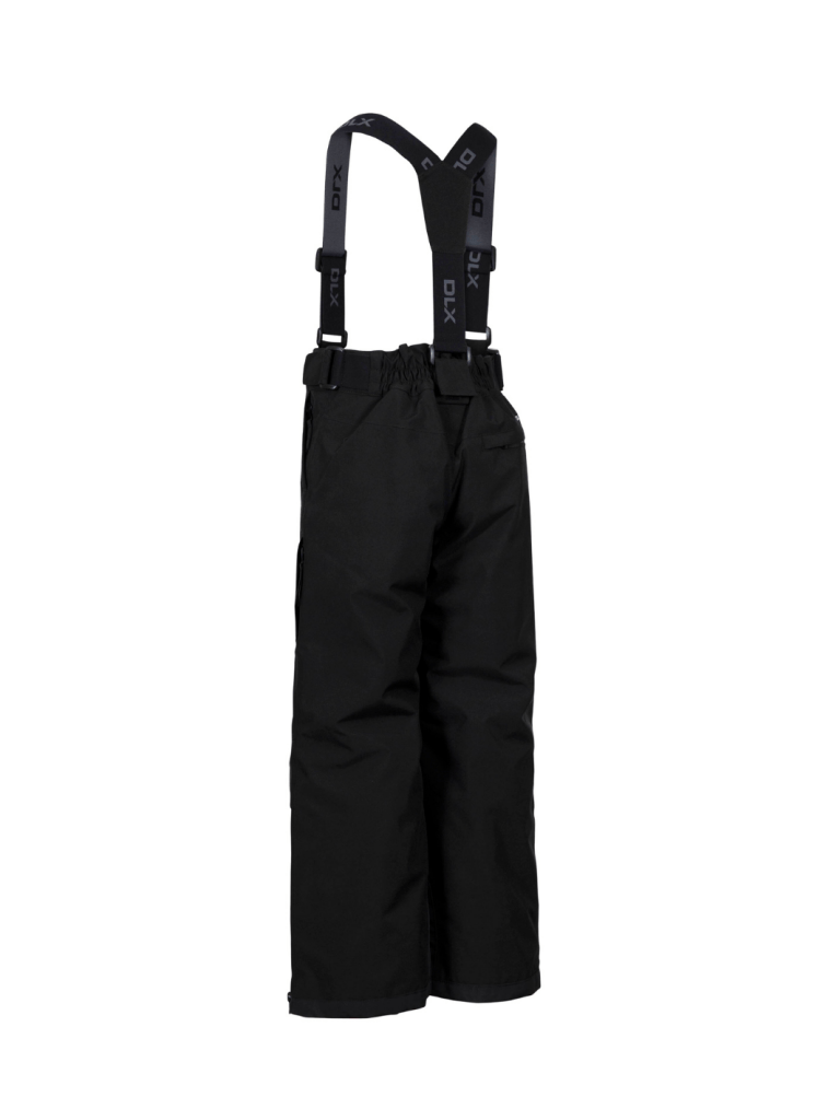 DLX sorte Benito børne skibukser kombinerer varme, komfort og funktionalitet til aktive børn på pisterne. Bukserne er fyldt med Down Touch-isolering, har tricotfor, articulated knæ og kick panels, hvilket sikrer bevægelsesfrihed under leg og skiløb.